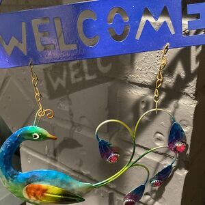 Vintage Peacock Metal Welcome Sign