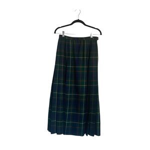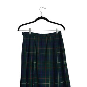 This vintage Pendleton signature tartan skirt in size 6 is the perfect addition to any wardrobe. The midi-length skirt features a classic plaid pattern making it a versatile piece for any occasion. The pleated style adds a touch of sophistication, while the preppy theme is perfect for academia or casual outings. Made of high-quality wool, this skirt is both comfortable and durable.