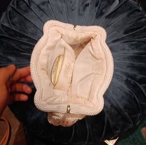This elegant floral beaded clutch is perfect for any occasion. The cream base is adorned with delicate pink and green floral accents, adding a touch of sophistication to your ensemble.