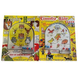 The Vintage Pinball Game Trophy Hunt #172 & County Fair #173 Lot Of 2 is a nostalgic set of pinball games from the 1960s, manufactured in the United States by Smethport Specialty. These classic games are perfect for collectors and enthusiasts of vintage toys, featuring characters and themes from the popular pinball era. With age levels ranging from young children to adults, these games offer hours of entertainment and a glimpse into the past for players of all ages.