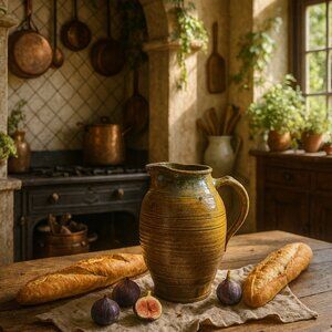 Vintage RARE Signed Mossy Brown Handmade Stoneware Pitcher Jug , Studio Art Pottery, Brown Olive Moss Glazed Pottery Jugs, Artisan Signed Pottery Artwork