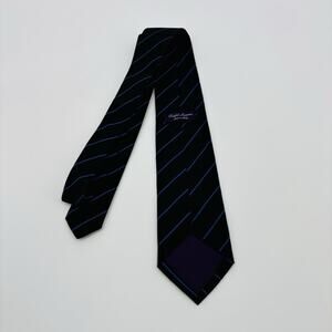Vintage Ralph Lauren Purple Label Tie Italy Silk Navy Blue Stripe