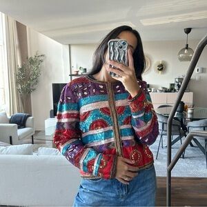 Vintage Rare 90's Leslie Fay Evenings Beaded Sequin Blazer Size L