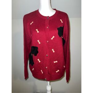 Vintage Red Cardigan Scotties Dogs Button Down M