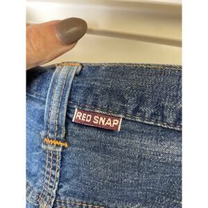 Vintage Red Snap Flare Jeans 1970s High Waist Wide Leg Bell Bottom Jeans Size 6