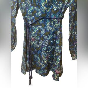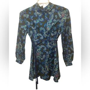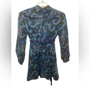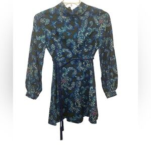 Vintage Retro Paisley Long Sleeve Collared Mini Dress size S