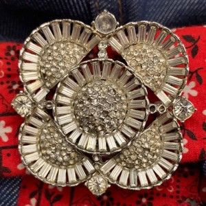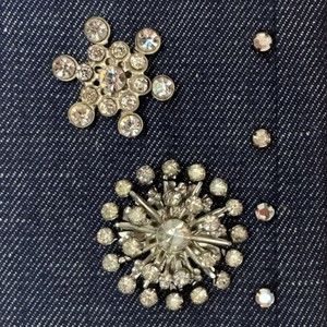Condition: Good condition, slight yellowing on a few of the rhinestones on the back pocket and right leg embellishment, some rhinestones on the broach belt. The embellishment on the belt is a removable broach, not a buckle. No size tag but feels like a modern 28 please refer to the measurements for accurate sizing.