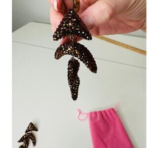 Vintage Richard Kerr Bronze Rhinestone Chunky Clip Earrings