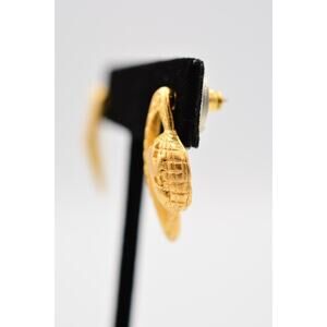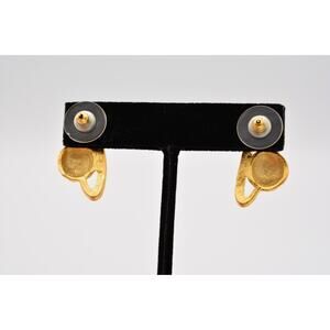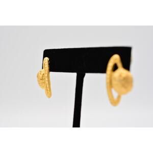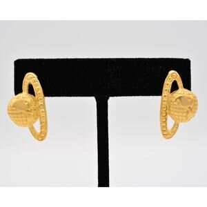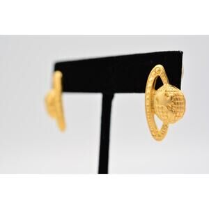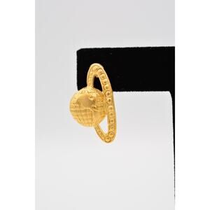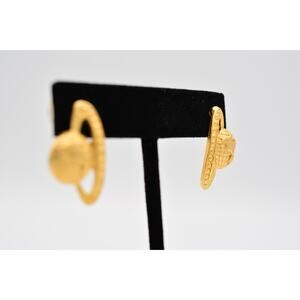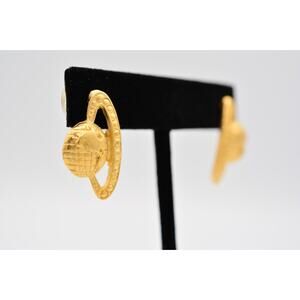 Vintage Saturn Earrings Planet Globe Earth Celestial Brushed Gold NOS 80s BinA9