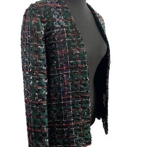 Vintage Sequin Plaid Green and Red Jacket size 8/ Holiday Jacket Christmas