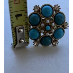 Vintage Size 6.5 Silver Oval Turquoise Pearl White Stone Faux Ring Western Style