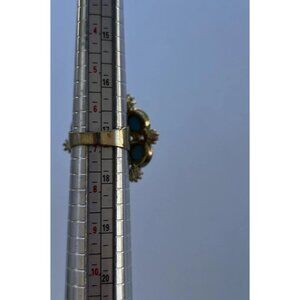 This vintage ring boasts a unique western style with a silver oval turquoise stone as the main feature. Accented with pearl secondary stones, this ring is made of sterling silver and has a ring size of 6.5. The vintage touch adds a timeless charm to this ethnic, regional, and tribal piece of jewelry.