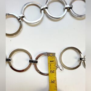 Vintage St John silver tone oversized wide link ring chain belt. Y2K