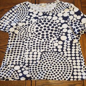 Vintage St John Sport blue&white polkadot swirl top size small in good used condition with minimal wear.