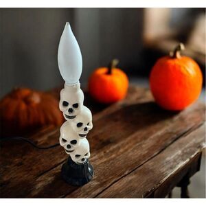 Vintage Stacked Skull Blow Mold Candle Light 9" Halloween