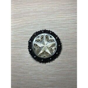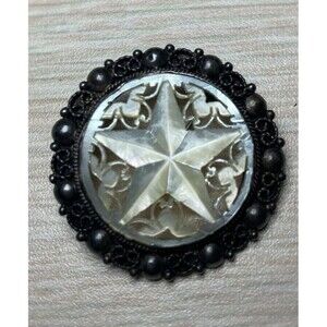 Vintage Sterling Silver Jerusalem Signed 925 Carved Mother Of Pearl Star Brooch