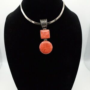Vintage Sterling Silver Large Coral Pendant BOHEMIAN INSPIRED 🙌🏻✨⏰💭🤝⌛️