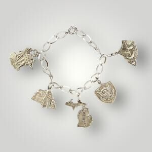 Vintage Sterling Silver Michigan Souvenir Charm Bracelet Bell Trading Post sz 7