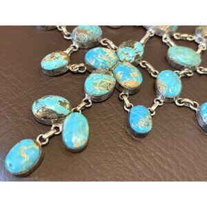 Vintage Sterling Silver Southwest Kingman? Turquoise Bib Statement Necklace 118g
