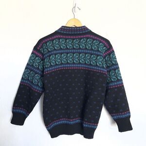 Vintage Stowe Woolens Sweater Small Nordic Cardigan Fair Isle Icelandic Cottage