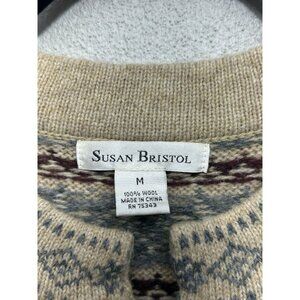 Vintage Susan Bristol 100% Wool Cardigan Sweater Size Medium Nordic Fair Isle