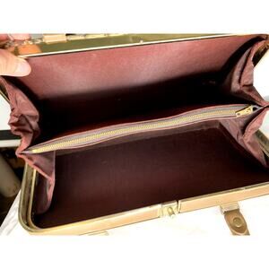 Vintage Tapestry Floral Satchel Kiss lock Handbag -Browns Greens