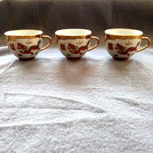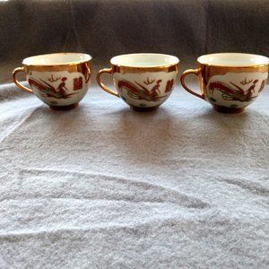 Vintage Tea Cups Dragon Phoenix Chinese Gold Trim 3 Piece Tea Cups