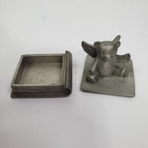 Vintage Teddybear Pewter Etain Zinn Tooth Fairy Tales Keepsake Box/Holder