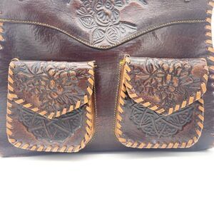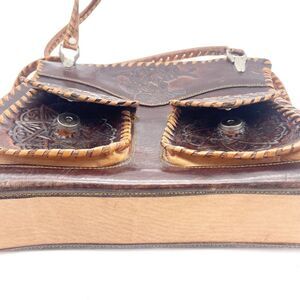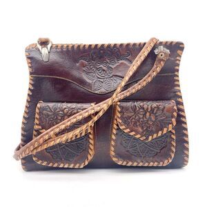 Vintage Tooled Leather Purse Brown Shoulder Bag Western Boho Saddlestitch