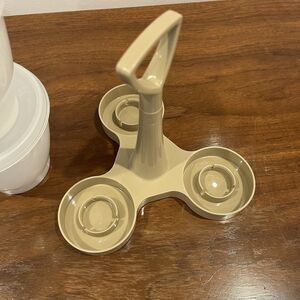 Vintage Tupperware 3 Containers Condiment Picnic Caddy Set Beige / White