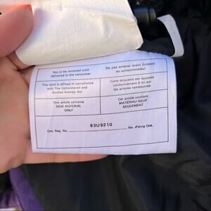 Vintage VITESSEE teal and purple color block ski parka with elastic cinched waist. Hood is zipped into collar compartment.