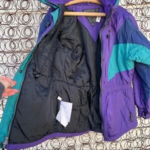 Vintage VITESSEE teal purple color block ski parka with elastic cinched waist