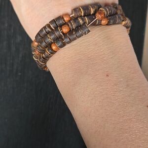 This trendy vibe like jewelry necklace showcases a harmonious blend of brown and orange hues, crafted from natural faux i think look of wooden wood beads.