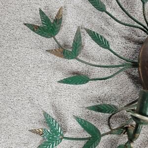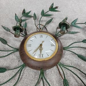 Vintage Wall Clock Light 29" Gold Green Brass Mid Century Leaf Vine Metal Tested