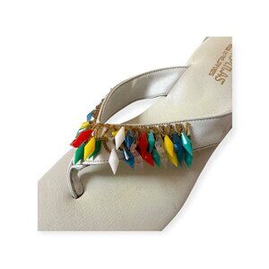 Vintage White Sandals w/ Multicolor Beads Filipinas Made in Philippines, Size 9
