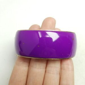 Vintage Wide Purple Enamel Hinged Bangle Bracelet with Security Chain, Estate