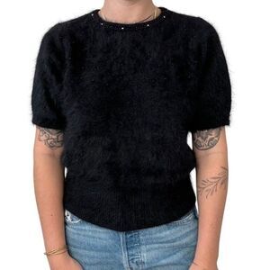 Vintage Womens Rosamela Black Angora Blend Fluffy Soft Short Sleeve Sweater Sz M