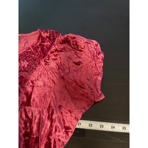 Vintage Womens Tunic Large Red Velvet Embroidered Whimsigoth Boho Witchy 90s