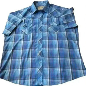 Vintage Wrangler Pearl Snap Western Shirt - Blue Plaid Double Snap Pockets XXL