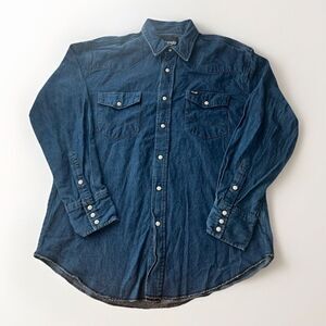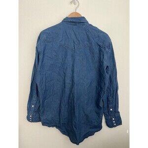 Vintage Wrangler Shirt Mens Large Blue Denim Pearl Snap Western Cowboy