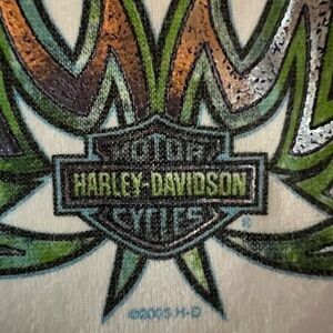 2005 Harley Davidson tshirt - Y2K style with 3/4 length sleeves, v-neck and more fitted look