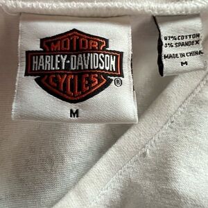 Vintage Y2K 2005 Harley-Davidson v-neck baby white tee Ozarks Springfield sz M