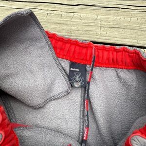 These pants channel that gritty discount mall urban wear energy — baggy fit, heavy cotton, patch logo on the thigh, and ankle zips that scream sports team warmups turned lifestyle streetwear. The muted gray with paneled stitching gives them a utilitarian, almost tech-athletic vibe, while the elastic waist and embroidered patch lock it straight into that Y2K mall sports shop aesthetic (think old Champs Sports racks or random flea market finds next to FUBU, Southpole, and Akademiks).