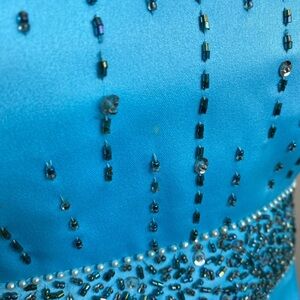 Vintage Y2K Cache Satin Beaded Strapless Long Blue Lace Up Back Dress Size 5/6