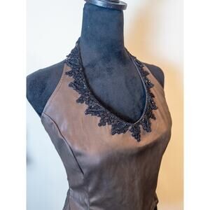 Vintage Y2K Club Contempo Sequin Lace Trim Sheen Halter Top Medium