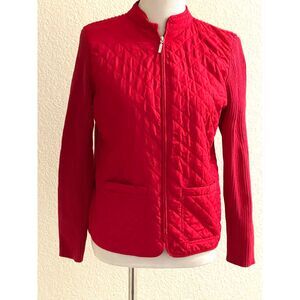 Vintage Y2K Croft & Barrow Red Sweater Cardigan Front Zip Knit Jacket Top PM