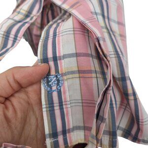 Vintage Y2K Izod 100% Cotton Pink Preppy Plaid Button Down Belted Shirt Dress S