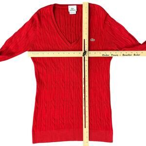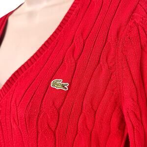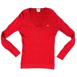 Vintage Y2K Lacoste Lipstick Red Cable Knit V Neck Sweater sz 38 / S Tenniscore