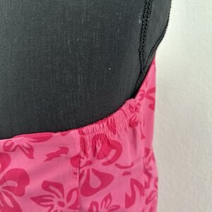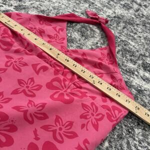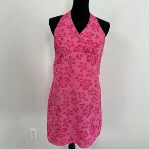 Vintage Y2K PInk Halter Floral Print Mini Dress Sz Large Juniors 11/13 Hibiscus
