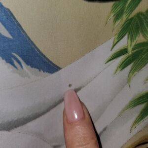 Vintage, pre-owned condition, 2 small pin holes, one in sleeve, one on front of shirt about 4 inches from bottom hem, please see photos.